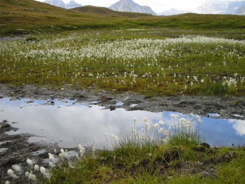 Im Sommer bilden Wollgräser von weitem sichtbare, leuchtend weiße Flächen.